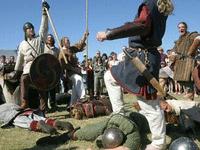 Schlachten nachzustellen. Die rauflustigen Wikinger zeigen eindrucksvoll