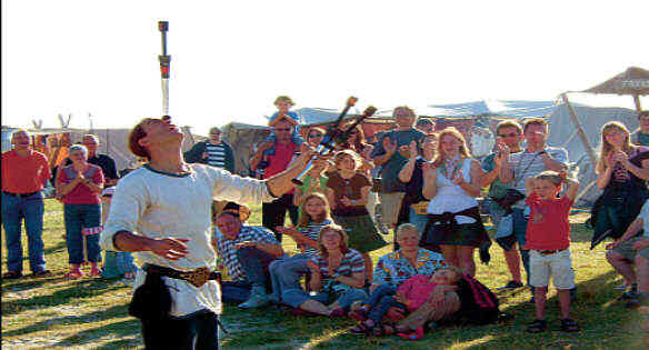 Kurzweil angebotenene Gaukelei und Jonglage folgen, die übrigens